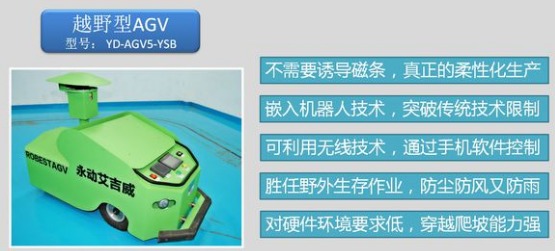 越野式AGV是一种移动机器人,是数字化装配“量身定做”的智能、移动“机器人”。它集中了传感器技术、机械工程、电子工程、计算机工程、自动化控制工程以及人工智能等多学科的研究成果,代表机电一体化的最高成就,是目前科学技术发展最活跃的领域之一。目前市面上出现的越野AGV并不多,最先走进人们视野里的可能就是艾吉威的YD-AGVS-YSB越野AGV。
