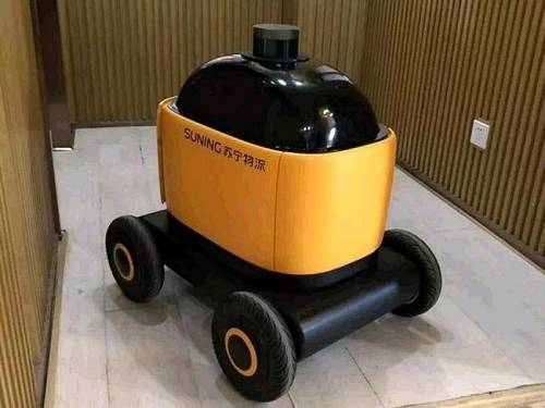 今年4月,苏宁自动送货机器人在南京滨江壹号小区亮相,进行包裹配送任务,这是国内第一辆可实现电梯交互的无人配送车“卧龙一号”。