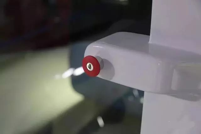 为了保证安全,阿波龙的左右车窗配置了直接关联到车辆制动系统带有钥匙的红色按钮,紧急情况下使用它对车辆进行紧急制动,保证坐在车辆人员安全。