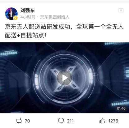 刚进入7月,2018年的下半年开启。7月1日一大早,京东集团董事局主席兼首席执行官刘强东又双叒叕在自己的头条号用一段视频为京东的无人黑科技“打call”了,但是这一次的主角不仅仅是“它”,而是“它们”——全球第一个全无人配送+自提站点!