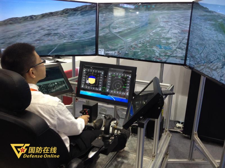 一名参观者在体验直升机飞行模拟系统 国防在线客户端特约记者 杨铁虎 摄