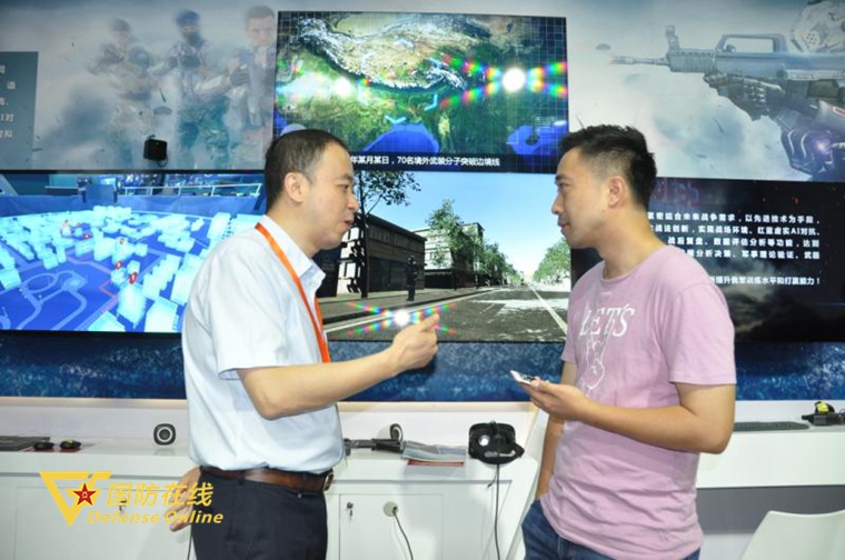 在北京神舟智汇科技有限公司展台,其研发的陆军兵种战术对抗训练模拟系统正模拟一场城市进攻战斗。屏幕下方不断滚动着各种装备作战的战斗要素,屏幕上方实时显示着整个战场的红蓝军态势。作为一家专门从事军事模拟仿真与武器装备配套产品技术研发的高科技公司,神舟智汇研发的这种系统,主要用于陆军合同作战训练中指挥员带兵种分队(模拟器)进行训练,既可训练指挥员的指挥筹划能力,也可训练战斗员的战术能力。
