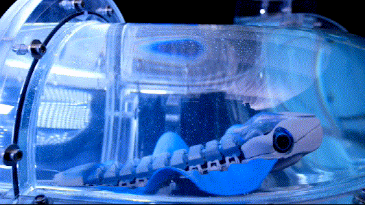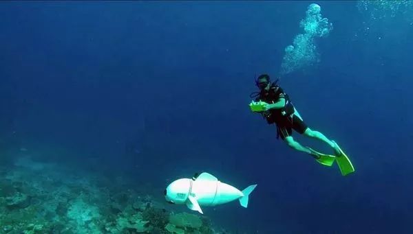 上图是Robert Katzschmann和来自麻省理工学院的软机器人研究小组创建了一种电池供电的机器鱼—SOFi,能够一次在水下待40多分钟,科学家们目前多用它来研究珊瑚和水下的生态环境。