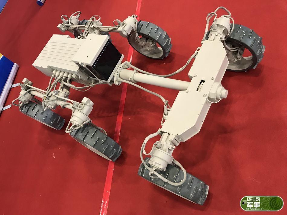 中国北方车辆研究所展示的轻型六轮可变形地面无人平台,这款无人车可以实现底盘展开、收缩和转向功能,具备轮步式行走、蟹行原地转向等多种运动模式,具备超强的地形适应能力。