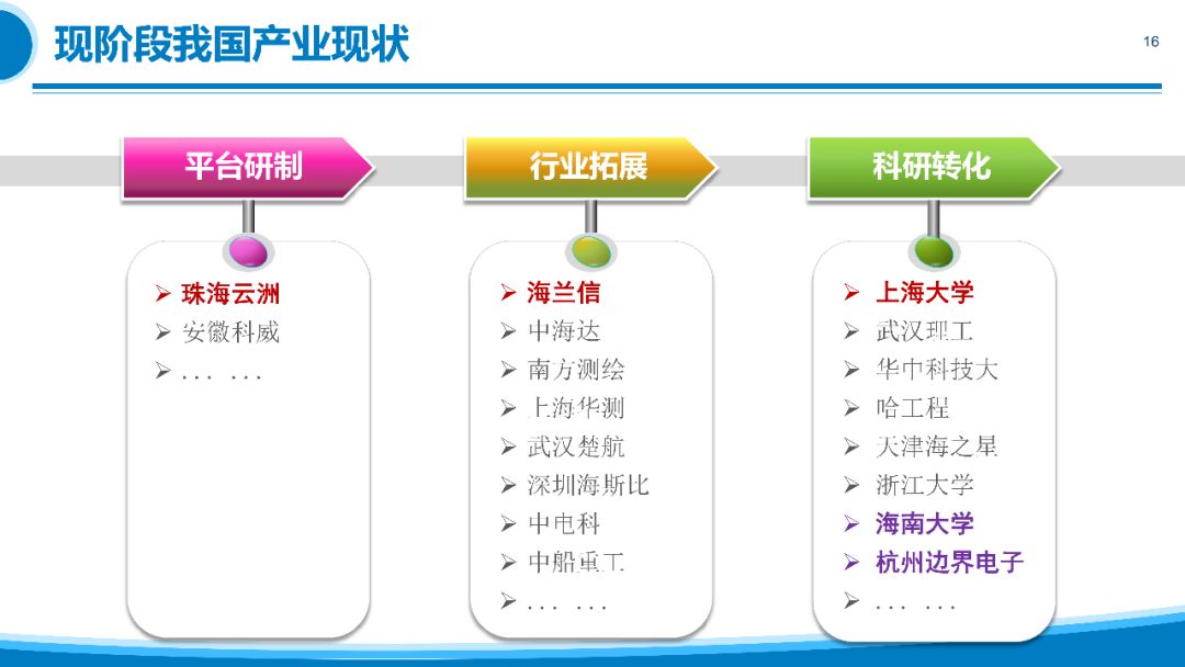 本文是国家海洋局南海调查技术中心董超副研究员在浙江舟山举办的首届“新时期海洋测绘发展论坛”上所作的大会发言。本报告从基本概念、国内外发展现状、技术发展趋势、应用领域、市场环境等角度对海洋智能无人艇进行了系统性分析。同时,围绕海洋调查、尤其是海洋测绘的迫切需求和无人艇的技术优势,重点介绍国家海洋局南海调查技术在海洋智能无人艇研制和应用领域所开展的工作。结合多年应用积累的经验,总结了海洋智能无人艇研制的技术难点,以及用户在选购和使用中须注意的各方面问题。