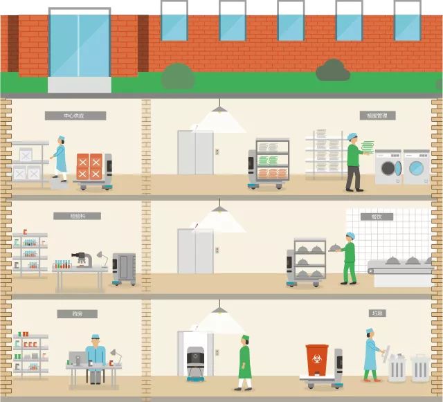 从前,医院药品从运输到储存所有环节通过人工,效率低、成本高。随着人力成本的不断攀升及医院精细化管理的需求提高,降低物流成本和作业差错和实现医院物流信息化和自助化,成为医院的发展需求。现如今,这冗杂的工作都由智能化装备医用智能物流机器人来代替。通过医院物资供应链管理云平台和物流机器人云平台对接后形成智能调度管理,实现多样物流需求的无缝对接运输,既能满足医院大批量高效传输,又能满足紧急传输的需求,使医院物资管理的全面智能化成为可能。更为重要的是,医务工作者的智慧得到了极大释放。