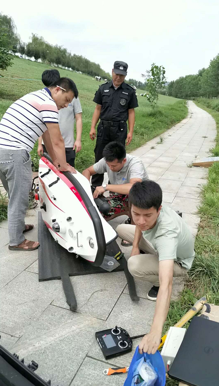 2018年7月5日,高新区环保局技术人员组织检查水体治理进度,检查中利用无人船对潏河高新段进行排污明渠和暗管排查,力求精准掌握潏河高新段排污情况,进而精准施策,治理河道。通过无人船搭载的水面上360度视频拍摄设备和水下声呐探测设备,可同步探测水面上排污明渠和水下排污暗管,精准溯源,让偷排暗管无所遁形。