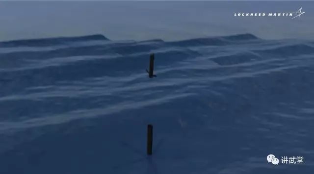 管子从水里冒出来,展开稳定支架,然后将飞机垂直喷射出去,迅速展开,飞走