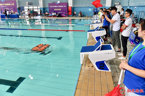 图说:水下机器人在水中竞速。新民晚报记者 徐程 摄