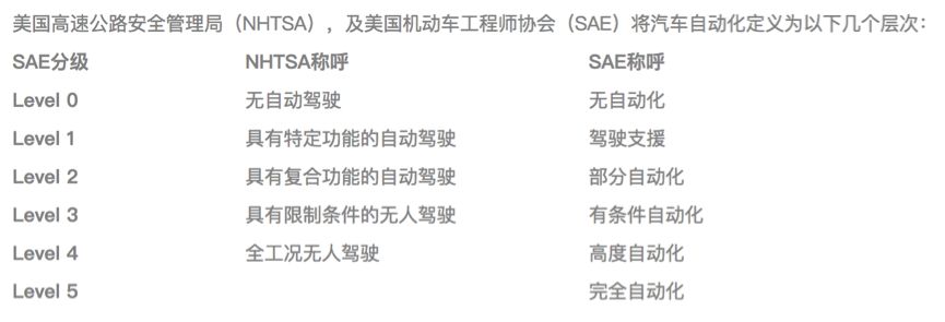 而在后文中提到的,是整车不配备方向盘、油门和刹车踏板,只需要乘客上车后设定好目的地,就可以在睡醒一觉后,到达目的地的那种车。用无人驾驶汽车业内的标准衡量,具备这种功能的车属于SAE标准的5级,即完全自动化级。不过4级的车,即高度自动化级,在某些特定的地理环境或天气状况下也能提供相同功能。