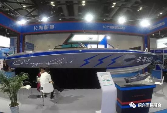 长海船艇公司展出了一款代号为“长海001”的快速无人战斗艇。该艇与常见的水面快艇大小相等,但是整体采用了平滑隐身设计,甲板采用了封闭式设计。这种设计能够最大程度的减少船体的阻力,同时提高隐身性能。该艇采用先进的泵喷水系统,最大速度可达80节(即150km/h)。这个速度是目前所有载人水面舰艇所达不到的。该无人战斗艇常规状态下可以携带水文探测装置和声呐系统。也可以携带载人模块和武装模块,可以轻松完成包括海洋资源调查、巡逻警戒和驱逐等任务。