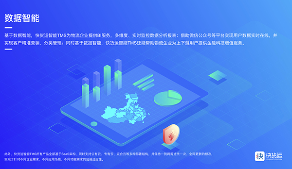 据了解,除了三款智能TMS系统之外,小快科技旗下还有闪垫付(小快金融)、货运滴滴(车货匹配平台)等多款智能产品,为传统物流企业提供全方位的解决方案,助力行业“智能”升级。