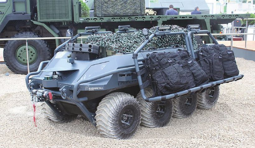 2018年法国萨托里国际防务展期间,德国莱茵金属公司披露了“任务大师”(Mission Master)货运无人车。“任务大师”基型车的有效载荷部分采用模块化设计且易于安装,可执行包括后勤运输、监视、防护、医疗后送、消防、核生化探测和通信中继等多种任务。货运型可作为战斗群的一部分部署,自主或半自主地伴随部队作战,旨在减轻士兵负重,从而提高地面部队的战术机动性和作战能力。