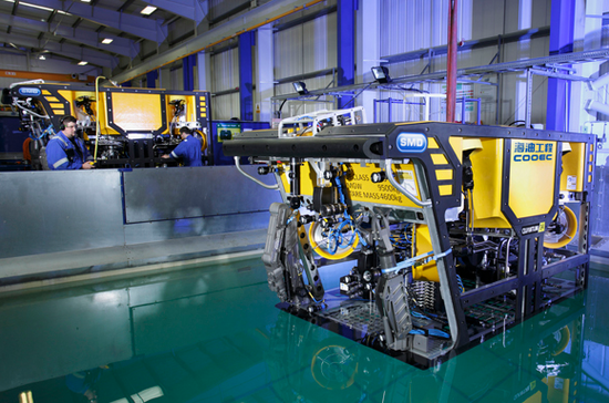 中车艾森迪海洋装备有限公司生产的国内最大马力无人遥控潜水器,在上海下线 图源:澎湃新闻