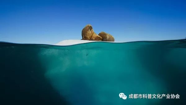 他们与美国盖茨豪辛公司合作制造了直径为60厘米的半球型摄像机,第一次实现了聚焦分层拍摄。这意味着,观众可以同时看到水下和水上的场景,并且不会失焦。《蓝色星球2》的一张经典海报就是这样完成的,他们从水上和水下两个角度呈现了海象在冰山上休息的场景。