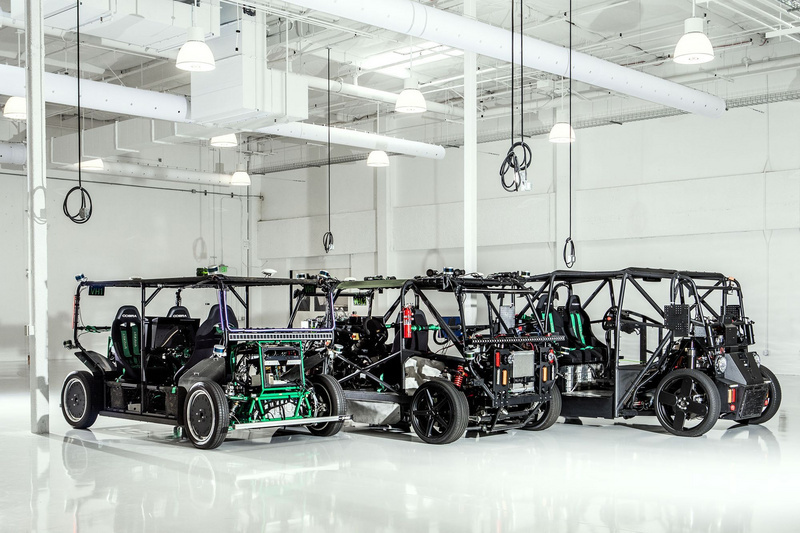 Zoox 原型车的其中三代 VH1、VH4 和 VH5(图片来源:Bloomberg)