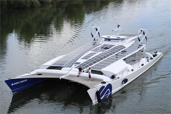这艘名为“能源观察者”(Energy Observer)的自动飞船主要由氢驱动,目前正在日本汽车制造商丰田公司的赞助下进行为期6年的世界巡回赛。