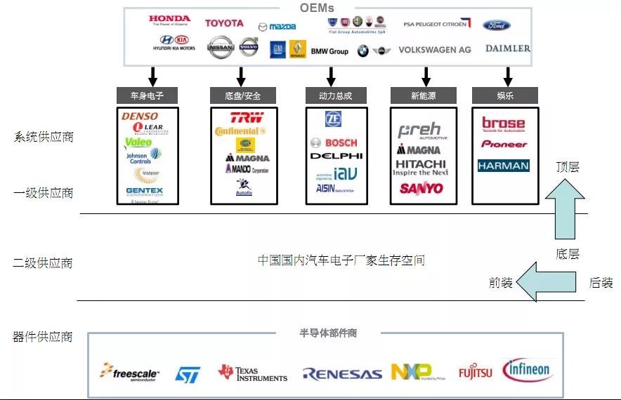 图表 | 汽车电子供应链各层级主要玩家分布(图表来自国泰君安证券)