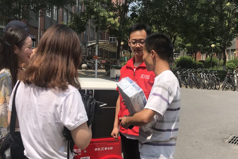 当天上午11时,在郑州轻工业学院科学校区的校园里,一辆印着京东标志的无人车引起了路人的围观。