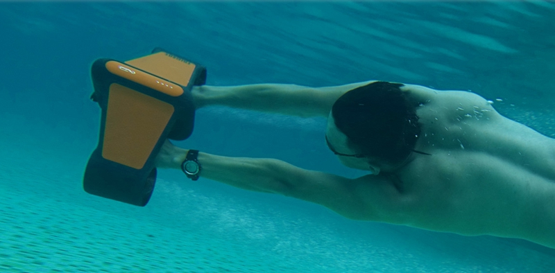 公司现在正在研发一款手持式水下飞行器Trident(泰鼎),具有机翼般的线条设计,两档可变速飞行,12kg超强推力,续航45分钟,速度最高可达每秒1.8米,下潜深度可达40m。