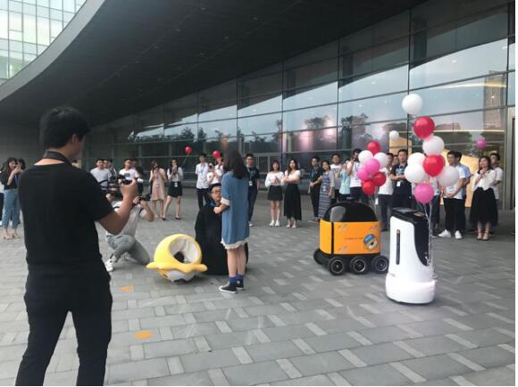 就在刚刚过去的8月20日,一场酝酿了许久的求婚仪式迎来了最幸福的时刻。苏宁总部的一位程序员,用最浪漫的方式向心里的姑娘示爱,除了亲写的表白代码、助攻团的快闪、苏宁全产业的“豪礼红包”、小Biu智能音箱的助力以外,男主人公还将求婚戒指放进“卧龙一号”、将玫瑰放进无人送货机器人,代替他送出心意。这别出心裁的“高科技惊喜”不仅打动了女主人公,还将幸福传递给在场所有人。