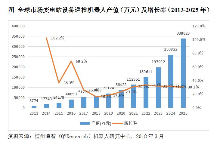恒州博智发表《2018-2025全球及中国变电站设备巡检机器人行业发展现状调研及投资前景分析报告》该报告提供了变电站设备巡检机器人行业的基本概况,包括定义,分类,应用和产业链结构。讨论发展政策和计划以及制造流程和成本结构。