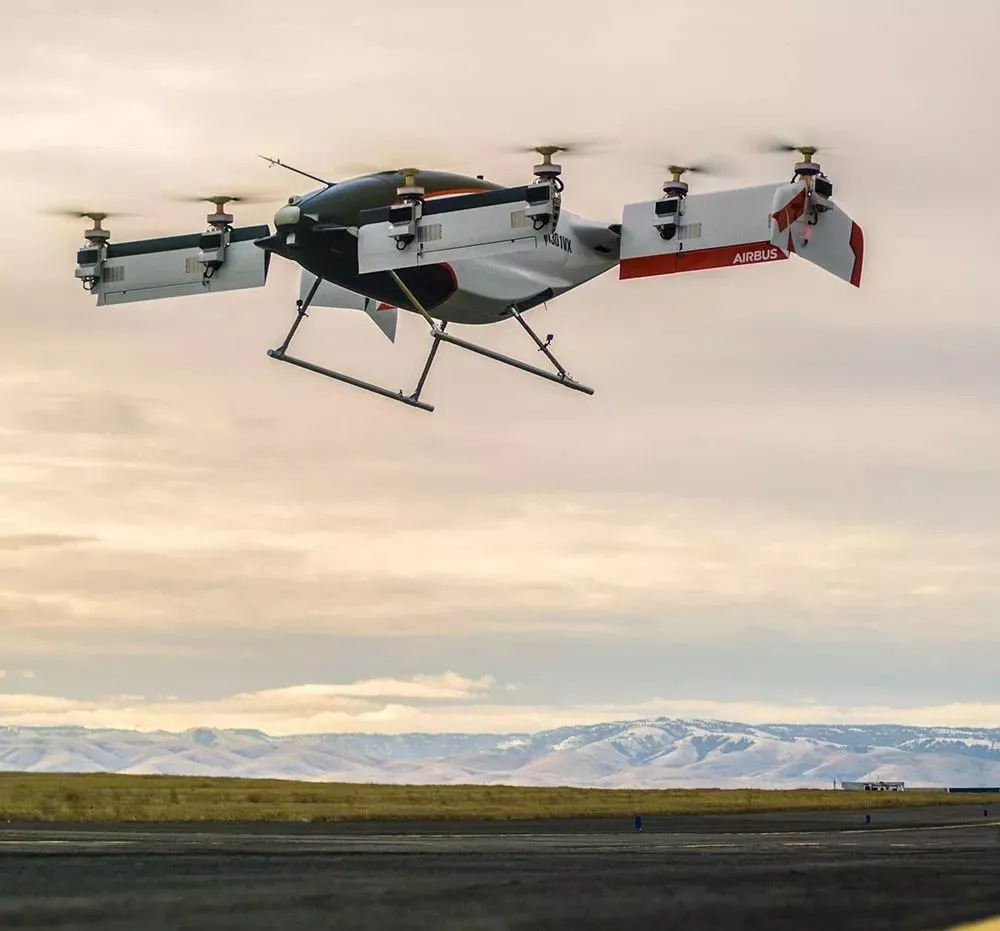 Airbus出品的电动的士Vahana在2018年2月成功地进行了首飞测试,飞行高度为5米,时间约53秒。