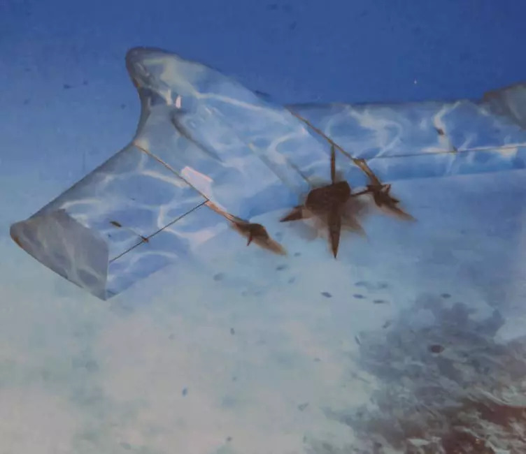 这种可潜水式无人机技术,受到被美国海军实验室关注。最近,这个实验室设计的无人水下潜航器暨无人机项目拥有了这一试验机型。他们脑洞大开,利用的是胸鳍仿生学推进技术来开发这样的两栖无人机系统。