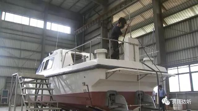 这艘正在建造的是浙江嘉蓝海洋电子有限公司自主研制的水上水下一体化巡防无人艇。