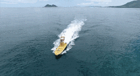 作为国内唯一实现高速水上水下一体化巡防的无人艇,它的最高航速每小时可达40节,目前正在进行设备的安装,预计6月上旬将交付国家有关部门。