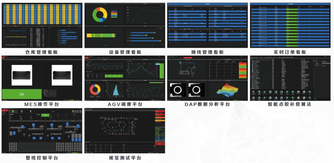 中控平台搭载了整个示范平台的核心系统架构,其包含ERP、MES、DAP等数据管理系统与整线控制、设备管理、AGV调度等控制平台,利用物联技术将智能设备、智能软件、智能仓储、智能物流等智能工厂组成部分有机结合,促进信息集成,实现资源共享,集成管理、控制、优化、调度等环节,为企业创造经济和品牌效益。