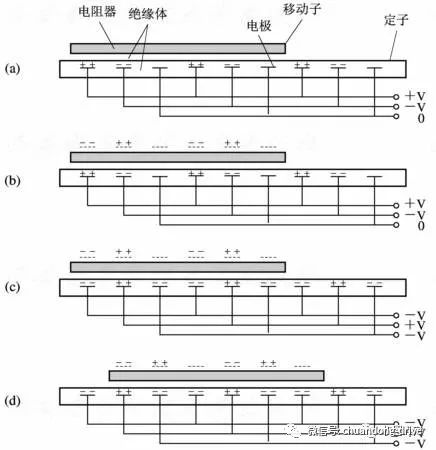 (1) 因为移动子中没有电极, 所以不必确定与定子的相对位置, 定子电极的间距可以非常小。