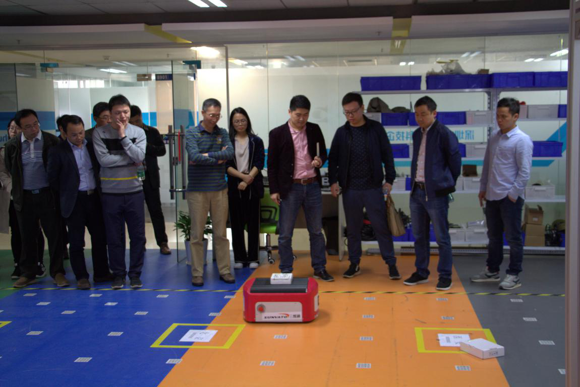 考察中,王总向考察团成员详细介绍了公司的发展历程、企业文化、产品研发现状及针对邮政系统开发的快递包裹分拣机器人系统方案。在观看三维通分拣机器人现场演示,并认真听取了王总的介绍后,双方就智能分拣机器人系统技术、现场方案、现场需求等进行了深入的交流。
