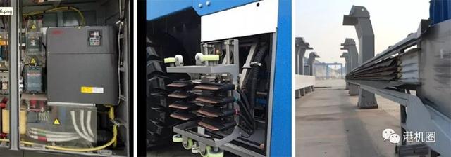 采用东芝的钛酸锂电池,亿能的电池管理系统。取电装置和充电机直接集成在AGV上,采用集中管控的方式。同样为“机会充电“方式,但是车载充电机配合取电小车加滑触线方式,实现了移动充电。