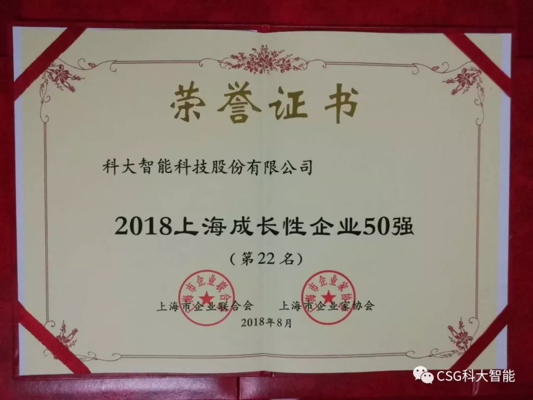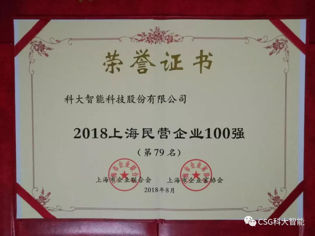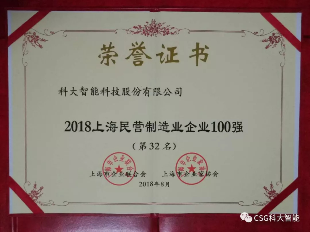 8月24日,2018上海百强企业榜单新鲜出炉。科大智能科技股份有限公司凭借优异的市场表现和卓越的企业实力,荣获“2018上海制造业企业100强”、“2018上海民营企业100强”、“2018上海民营制造业企业100强”、“2018上海成长性企业50强”等奖项。