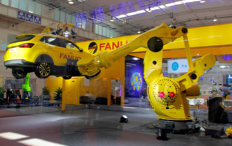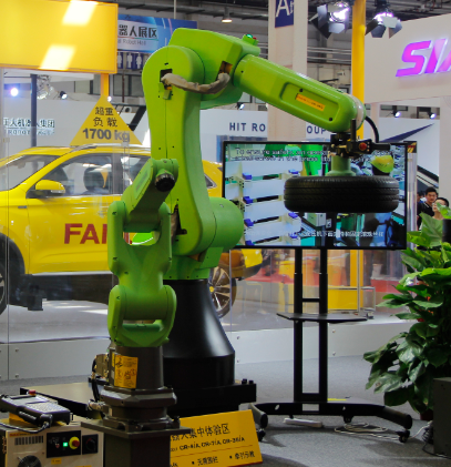 在世界机器人大会上,发那科展示了一台巨型机器人,这台机器人可以举起一台完整装配的汽车,未来可以用于整车装配之后的运输。过去,汽车的搬运可能需要借助其它传动设备或者人为驾驶到展厅,以后机器人可以直接抓起汽车放到销售店的展厅上。