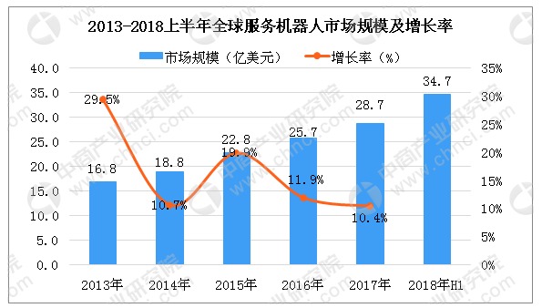 2018上半年全球服务机器人市场规模为34.7亿美元,2013-2017年,全球服务机器人市场规模逐年增长,伴随着信息技术和互联网的快速发展,人工智能技术的不断完善,推动着智能服务机器人应用场景和服务模式的不断拓展。作为物联网生态系统中的信息交换中枢,服务机器人还将借助互联网和云为其他联网设备提供随时、随地的信息输入,并通过人工智能技术进一步代替用户对其它联网设备进行自主操控,为用户提供智能化服务,市场前景十分广阔。