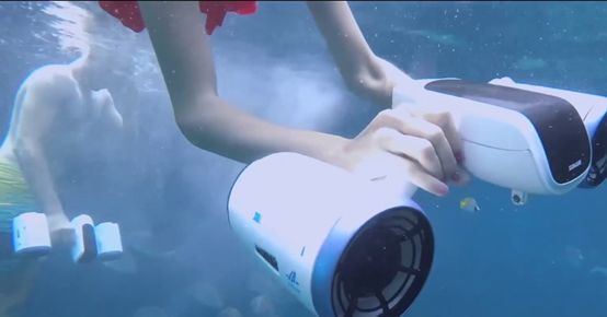 动力方面,白鲨MIX采用双推进器设计,速度可达到每秒1.4米,要知道,在27.5秒以内游完50米自由游,就能达到二级运动员的水平,相当于每秒1.8米左右。在操作方面,用户在手握的地方就可以按动开关,操作非常简单,即使不会游泳或划水能力弱的人,比如小孩,也能体验到在水里畅游的乐趣。