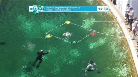 本届比赛的主题为水下赌城,要求机器人能够在水下自主完成投币出发、自主巡线、识别骰子、发射鱼雷、投掷标记物、抓取目标物、水声定位、定点上浮等任务。哈尔滨工程大学E唯代表队出色完成了自主过门、撞击指定点数目标物、随机声源任务、识别颜色投掷标记物、定点上浮、抓取释放小球等全部任务,以大比分领先进入决赛,并最终获得冠军。