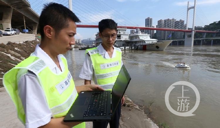 无人船的诞生主要融合了无线通讯、远程控制、动力推进系统、在线数据采集、遥测遥控等技术。图为工作人员对无人船进行远程遥控。