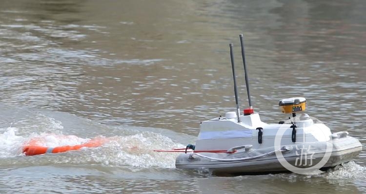 综合各类技术的应用充分释放了人力资源及成本,让很多专业人员才能做的事情,普通人也能轻松应对。 图为无人船首次拖带救生圈。