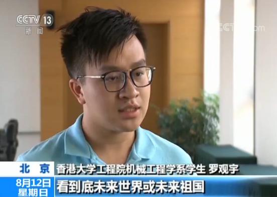 香港中文大学机械与自动化工程系学生 梁景晋:祖国现在大力推动粤港澳大湾区(建设),所以就希望毕业以后到粤港澳大湾区里工作,建设大湾区,与内地的同胞一起共同建设新的时代。