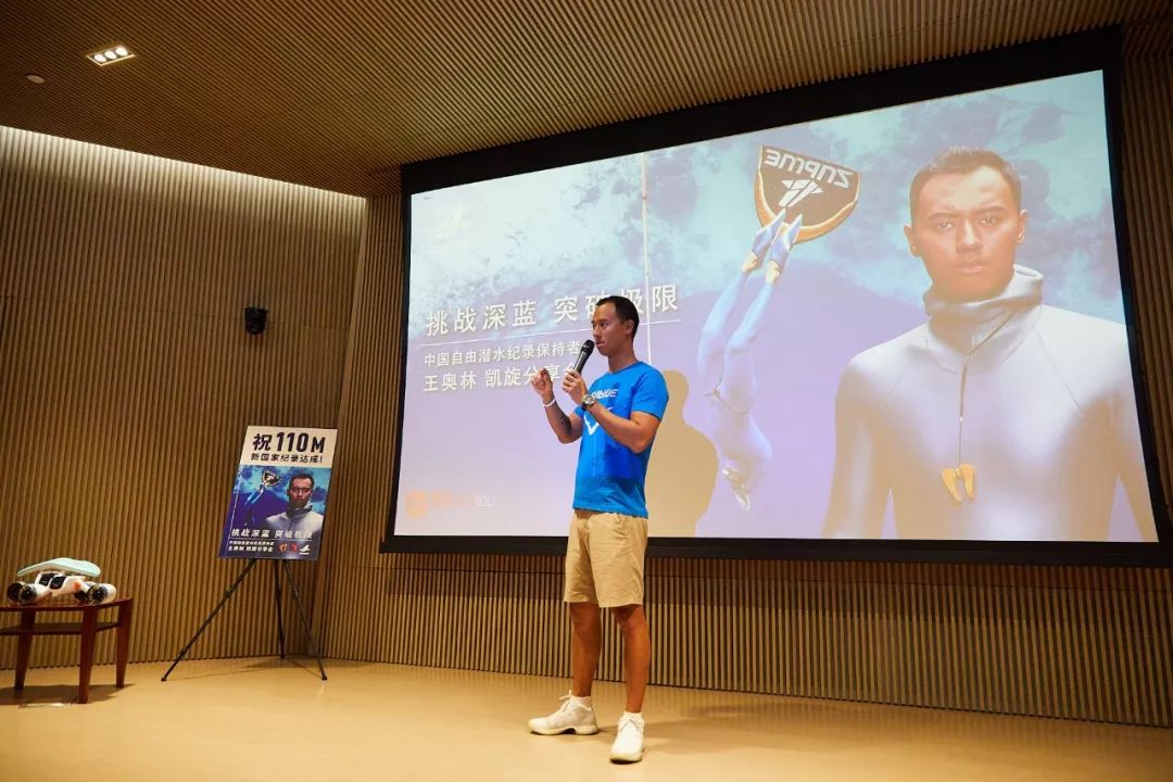 8月10日,王奥林在上海举办凯旋分享会。分享会上,王奥林向粉丝和深潜爱好者们介绍了他的深潜新伙伴——深之蓝“白鲨MIX”水下助推器。