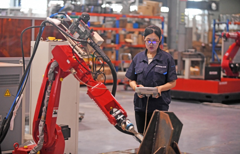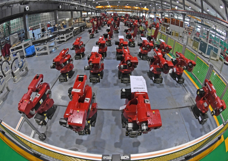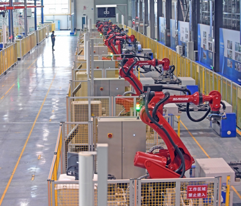 这是沈阳新松机器人自动化股份有限公司工业机器人生产车间(2017年6月6日摄)。