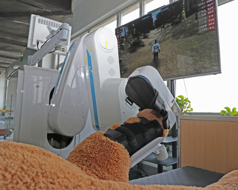 这是在沈阳新松机器人自动化股份有限公司生产车间内拍摄的医疗辅助康复机器人(7月16日摄)。