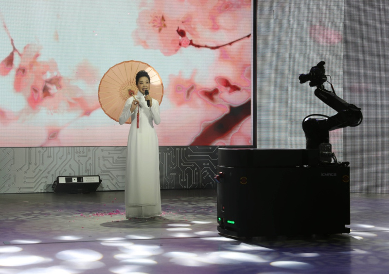由沈阳广播电视台与沈阳新松机器人自动化股份有限公司联合研制的智能移动拍摄机器人进行表演拍摄(8月8日摄)。