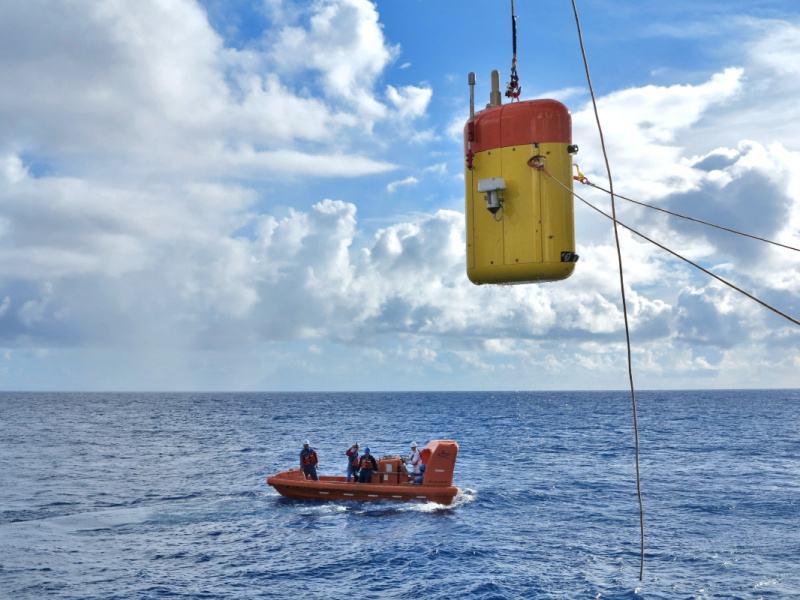 由中国科学院沈阳自动化研究所科研团队研制的“海斗”自主遥控水下机器人在西太平洋进行下潜实验(2016年7月18日摄)。