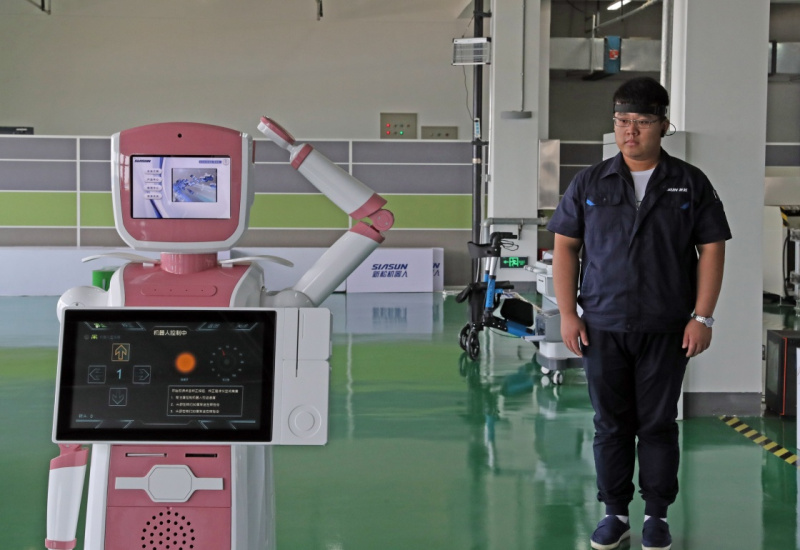 这是在沈阳新松机器人自动化股份有限公司生产车间内拍摄的脑波控制机器人(7月16日摄)。