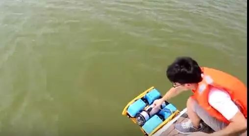 智能水下机器人成方形,如书包大小。两个小时的测试,机器人在梁子湖里尽情驰骋,时而在湖面快速挺进,时而深入湖底探查风光,一展自己的灵活、敏捷、高清、稳定的性能。