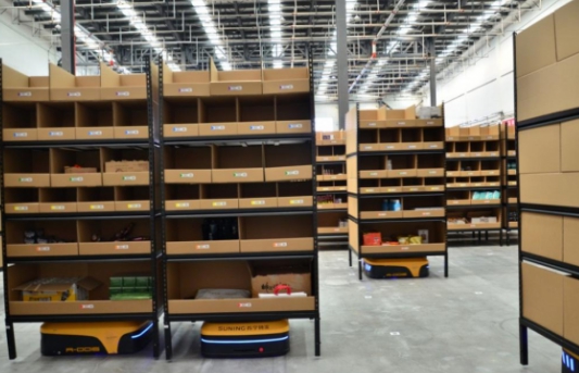 与此同时,苏宁AGV机器人已经大批量投入使用,2017年11月,上海苏宁机器人仓正式上线,目前总计有270组AGV机器人,未来将引进达到1000组,成为华东乃至全国最大的机器人物流基地。